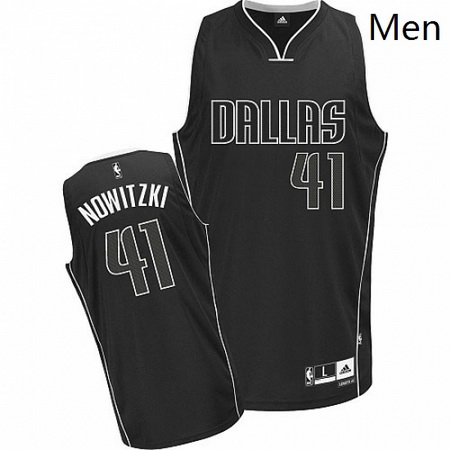 Home>NBA>Dallas Mavericks>Men>Mens Adidas Dallas Mavericks 41 Dirk Nowitzki Authentic BlackWhite Fashion NBA Jersey