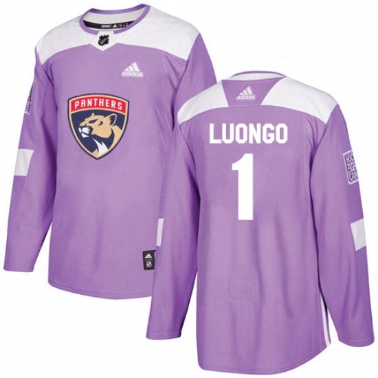 Mens Adidas Florida Panthers 1 Roberto Luongo Authentic Purple Fights Cancer Practice NHL Jersey