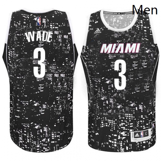 Mens Adidas Miami Heat 3 Dwyane Wade Swingman Black City Light NBA Jersey