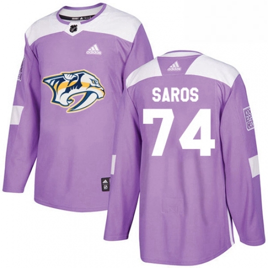 Mens Adidas Nashville Predators 74 Juuse Saros Authentic Purple Fights Cancer Practice NHL Jersey