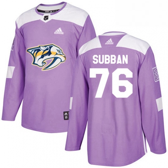 Mens Adidas Nashville Predators 76 PK Subban Authentic Purple Fights Cancer Practice NHL Jersey