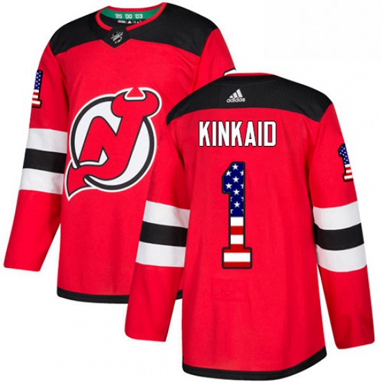 Mens Adidas New Jersey Devils 1 Keith Kinkaid Authentic Red USA Flag Fashion NHL Jersey