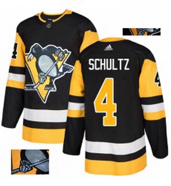 Mens Adidas Pittsburgh Penguins 4 Justin Schultz Authentic Black Fashion Gold NHL Jersey