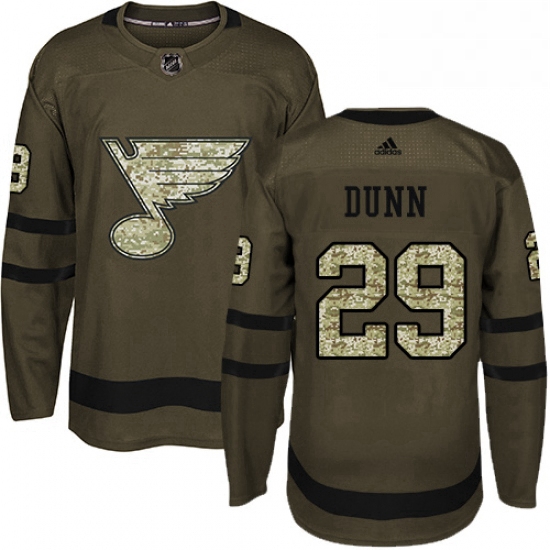 Home>NHL>ST.LOUIS BLUES>Men>Mens Adidas St Louis Blues 29 Vince Dunn Authentic Green Salute to Service NHL Jersey