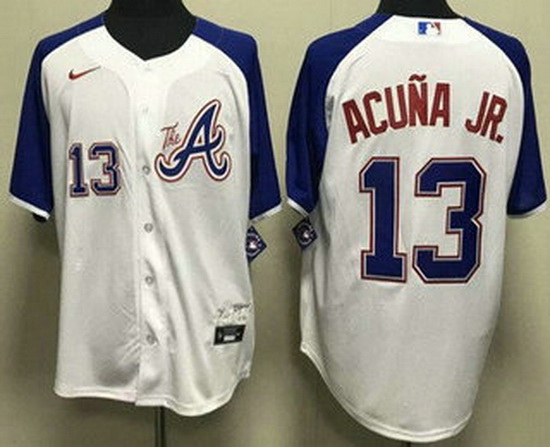 Home>MLB>Atlanta Braves>Men>Men's Atlanta Braves #13 Ronald Acuna Jr White 2013 City Cool base Jersey