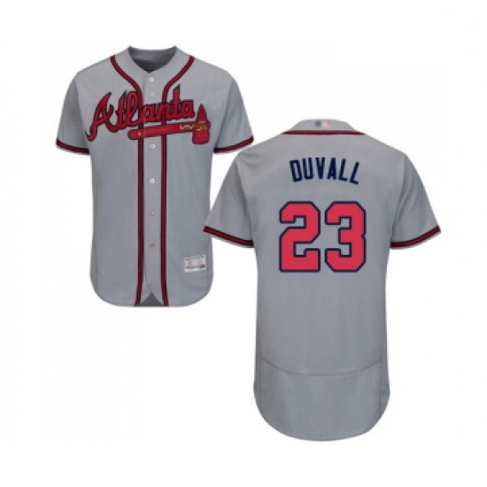 Mens Atlanta Braves 23 Adam Duvall Grey Road Flex Base Authentic Collection Baseball Jersey