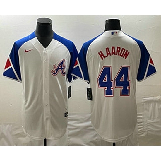 Home>MLB>Atlanta Braves>Men>Men's Atlanta Braves #44 Hank Aaron White 2023 City Connect Cool Base Stitched Jersey