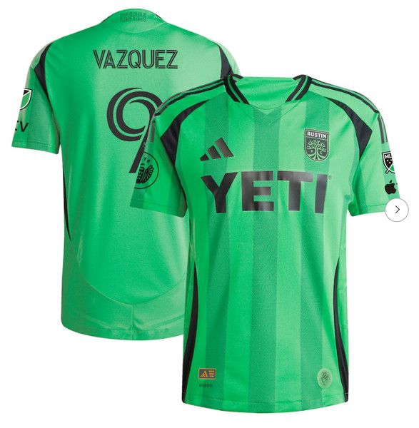 Mens Austin FC Brandon Vazquez adidas Green 2025 The Heartbeat Kit Authentic Player Jersey