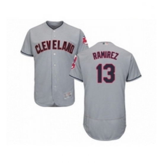 Mens Cleveland Indians 13 Hanley Ramirez Grey Road Flex Base Authentic Collection Baseball Jersey