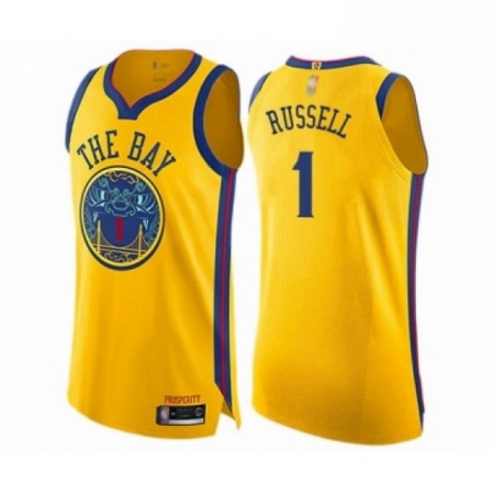 Mens Golden State Warriors 1 DAngelo Russell Authentic Gold Basketball Jersey City Edition