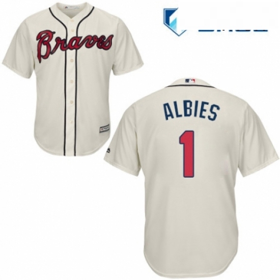 Mens Majestic Atlanta Braves 1 Ozzie Albies Replica Cream Alternate 2 Cool Base MLB Jersey