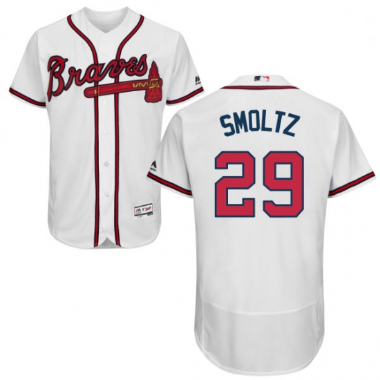 Home>MLB>Atlanta Braves>Men>Mens Majestic Atlanta Braves 29 John Smoltz White Home Flex Base Authentic Collection MLB Jersey