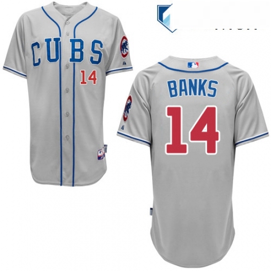 Mens Majestic Chicago Cubs 14 Ernie Banks Authentic Grey Alternate Road Cool Base MLB Jersey