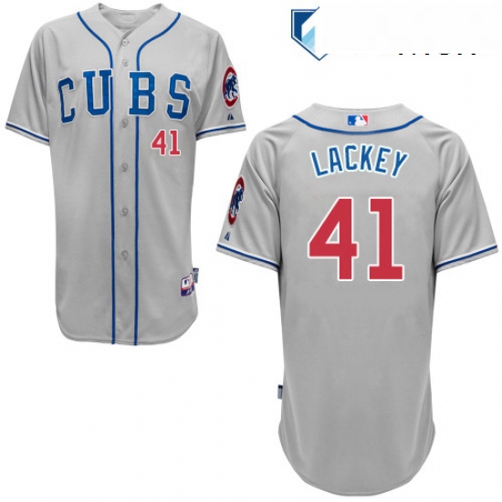 Home>MLB>Chicago Cubs>Men>Mens Majestic Chicago Cubs 41 John Lackey Replica Grey Alternate Road Cool Base MLB Jersey