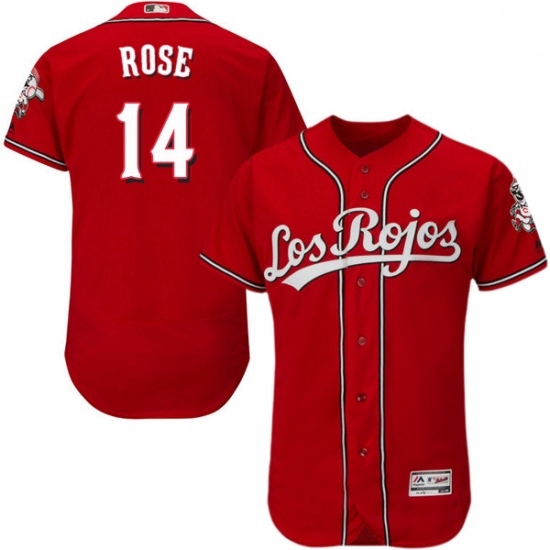 Mens Majestic Cincinnati Reds 14 Pete Rose Red Los Rojos Flexbase Authentic Collection MLB Jersey