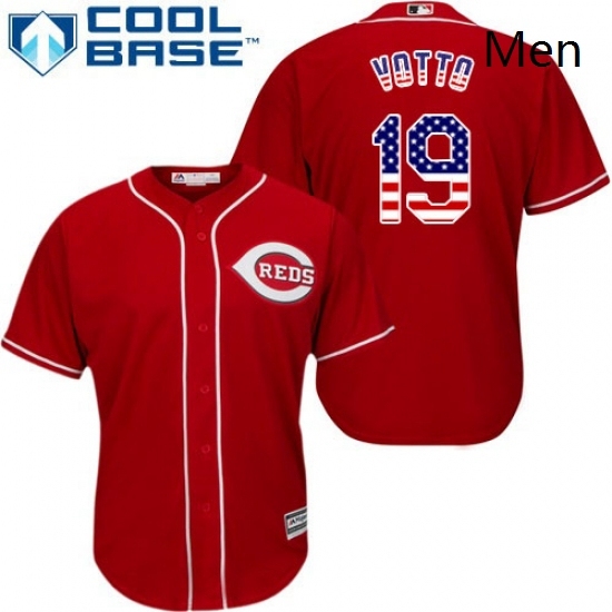 Mens Majestic Cincinnati Reds 19 Joey Votto Replica Red USA Flag Fashion Cool Base MLB Jersey