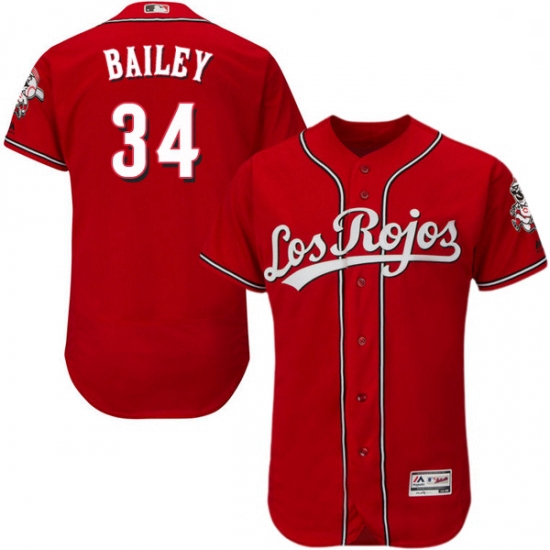 Mens Majestic Cincinnati Reds 34 Homer Bailey Red Los Rojos Flexbase Authentic Collection MLB Jersey