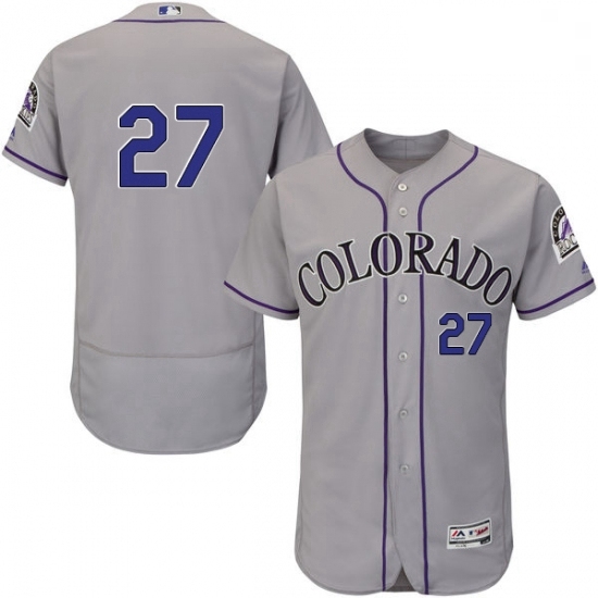 Mens Majestic Colorado Rockies 27 Trevor Story Grey Road Flex Base Authentic Collection MLB Jersey