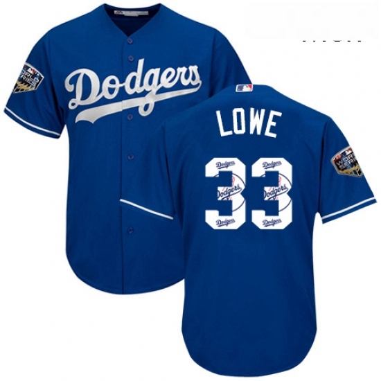 Home>MLB>Los Angeles Dodgers>Men>Mens Majestic Los Angeles Dodgers 33 Mark Lowe Authentic Royal Blue Team Logo Fashion Cool Base 2018 World Series MLB Jersey