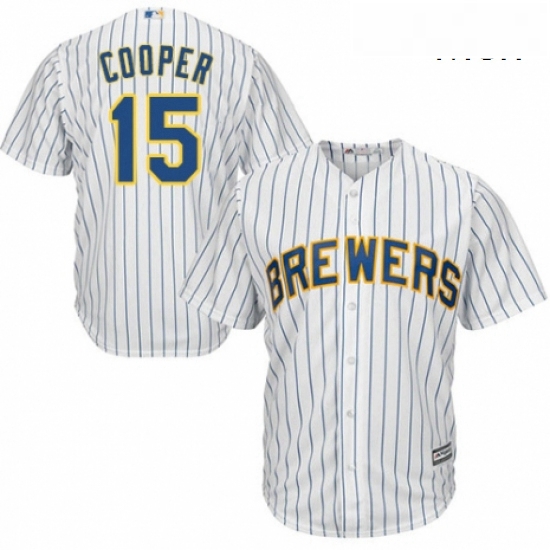 Mens Majestic Milwaukee Brewers 15 Cecil Cooper Replica White Home Cool Base MLB Jersey