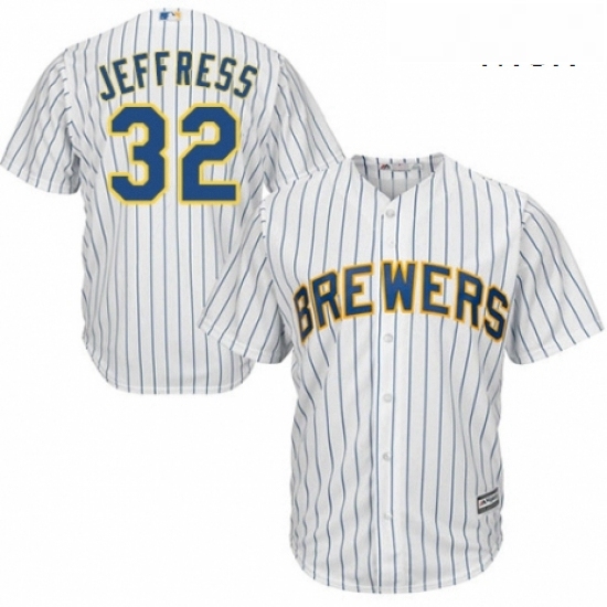 Mens Majestic Milwaukee Brewers 32 Jeremy Jeffress Replica White Home Cool Base MLB Jersey