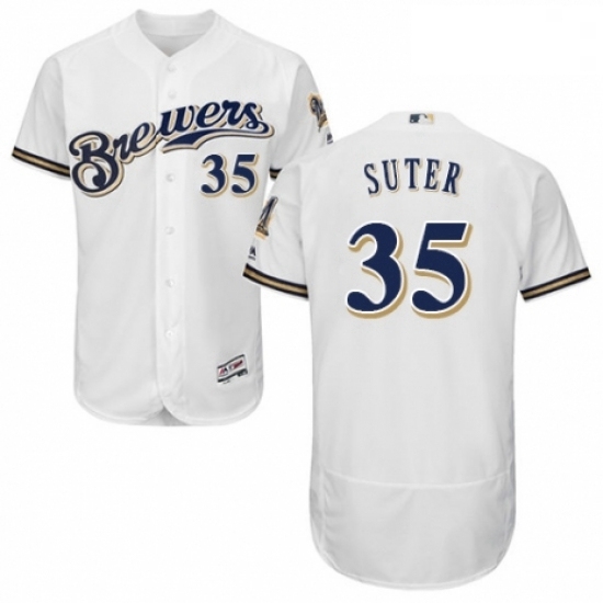Home>MLB>Milwaukee Brewers>Men>Mens Majestic Milwaukee Brewers 35 Brent Suter Navy Blue Alternate Flex Base Authentic Collection MLB Jersey