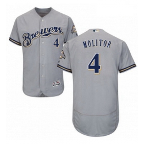 Mens Majestic Milwaukee Brewers 4 Paul Molitor Grey Road Flex Base Authentic Collection MLB Jersey