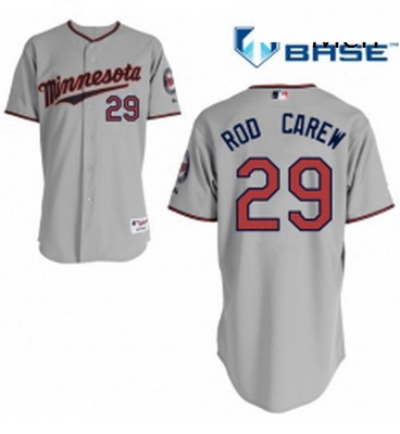 Mens Majestic Minnesota Twins 29 Rod Carew Authentic Grey Road Cool Base MLB Jersey