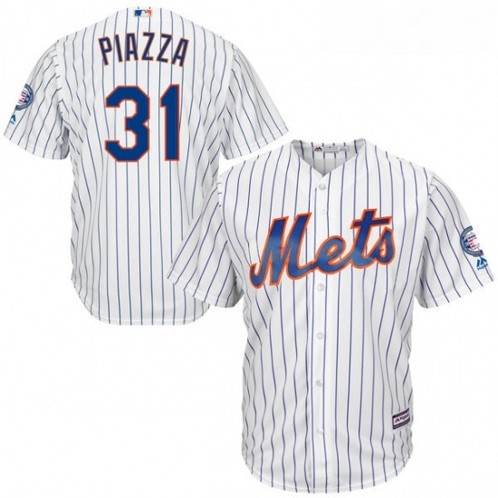 Mens Majestic New York Mets 31 Mike Piazza Authentic White Home 2016 Hall Of Fame Sleeve Patch Cool Base MLB Jersey