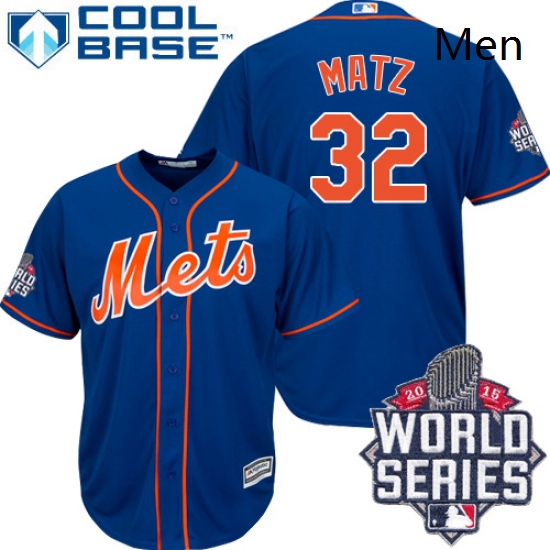 Home>MLB>New York Mets>Men>Mens Majestic New York Mets 32 Steven Matz Authentic Royal Blue Alternate Home Cool Base 2015 World Series MLB Jersey