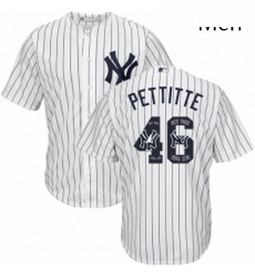 Mens Majestic New York Yankees 46 Andy Pettitte Authentic White Team Logo Fashion MLB Jersey