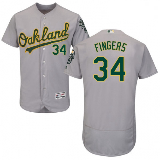 Mens Majestic Oakland Athletics 34 Rollie Fingers Grey Road Flex Base Authentic Collection MLB Jersey