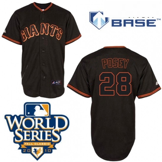 Mens Majestic San Francisco Giants 28 Buster Posey Authentic Black Cool Base 2010 World Series Patch MLB Jersey