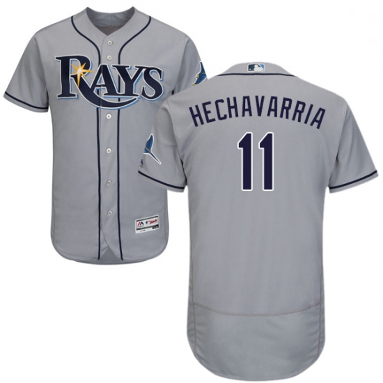 Mens Majestic Tampa Bay Rays 11 Adeiny Hechavarria Grey Flexbase Authentic Collection MLB Jersey