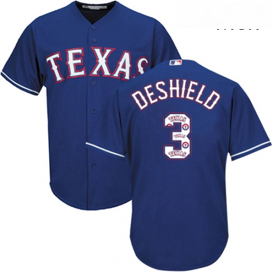 Mens Majestic Texas Rangers 3 Delino DeShields Authentic Royal Blue Team Logo Fashion Cool Base MLB Jersey