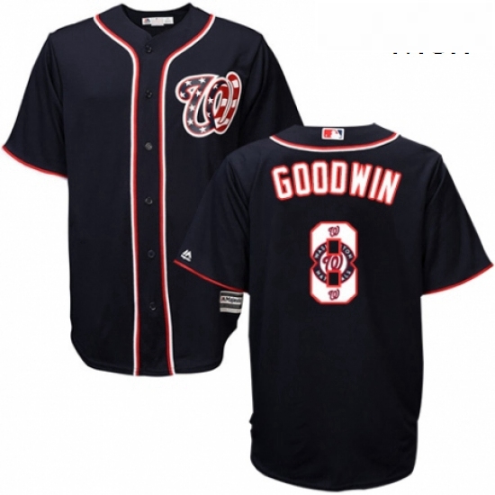 Home>MLB>Washington Nationals>Men>Mens Majestic Washington Nationals 8 Brian Goodwin Authentic Navy Blue Team Logo Fashion Cool Base MLB Jersey