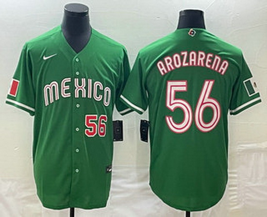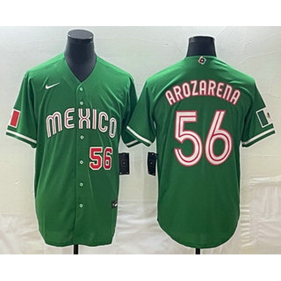 Men's Mexico Baseball #56 Randy Arozarena Number 2023 Green World Classic Stitched Jerseys