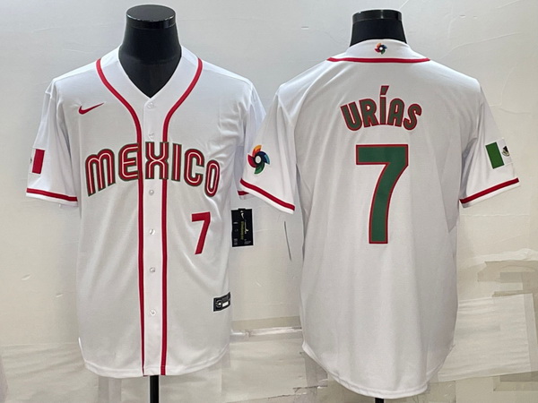 Men's Mexico Baseball #7 Julio Urias 2023 White World Baseball Classic Stitched Jerseys