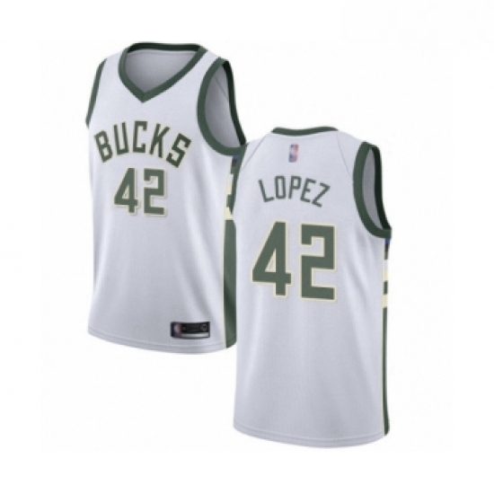 Mens Milwaukee Bucks 42 Robin Lopez Authentic White Basketball Jersey Association Edition