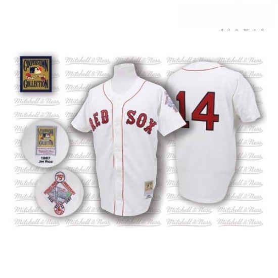 Home>MLB>Boston Red Sox>Men>Mens Mitchell and Ness 1987 Boston Red Sox 14 Jim Rice Replica White Throwback MLB Jersey