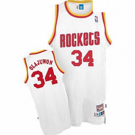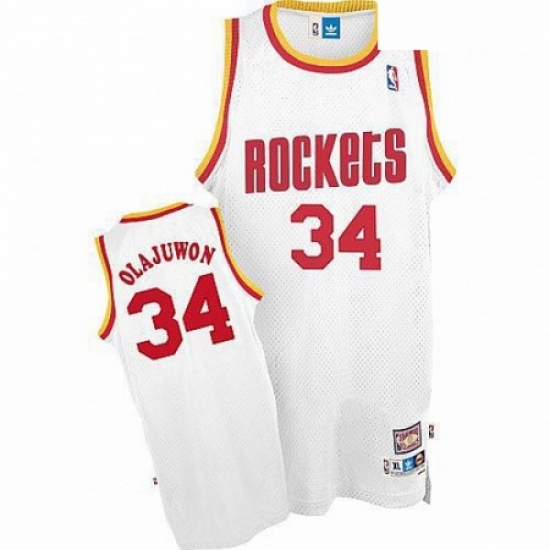 Mens Mitchell and Ness Houston Rockets 34 Hakeem Olajuwon Authentic White Throwback NBA Jersey