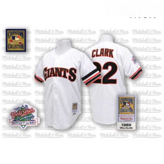Mens Mitchell and Ness San Francisco Giants 22 Will Clark Replica White Throwback MLB Jersey