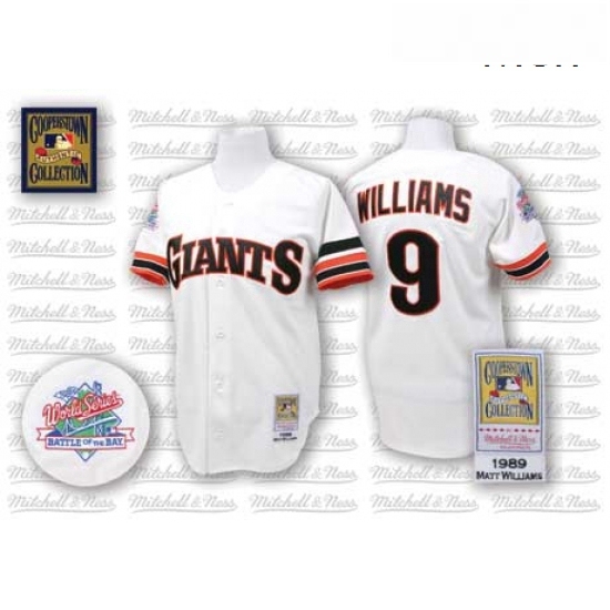 Mens Mitchell and Ness San Francisco Giants 9 Matt Williams Replica White Throwback MLB Jersey