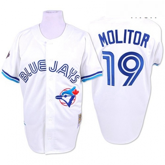 Mens Mitchell and Ness Toronto Blue Jays 19 Paul Molitor Replica White Throwback MLB Jersey