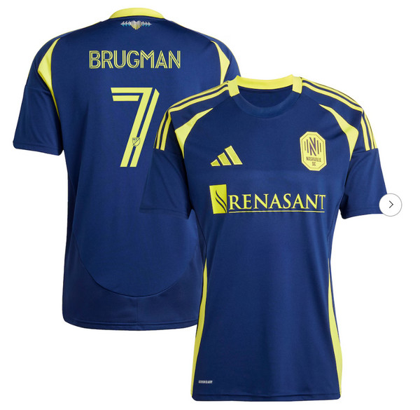 Mens Nashville SC Gastón Brugman adidas Navy 2025 The Heart of Nashville Kit Replica Player Jersey