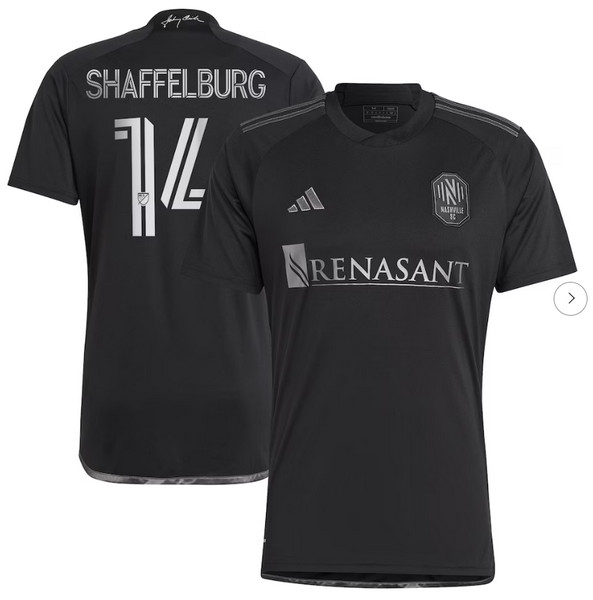 Mens Nashville SC Jacob Shaffelburg adidas Black 2024 Man In Black Kit Replica Player Jersey