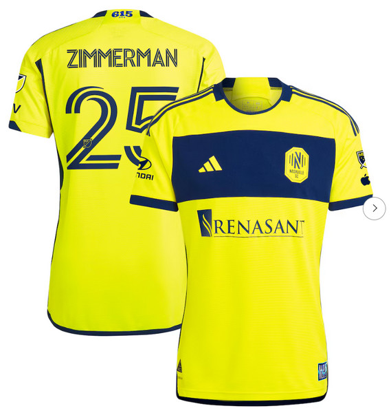 Mens Nashville SC Walker Zimmerman adidas Yellow 2024 The 615 Kit Authentic Player Jersey