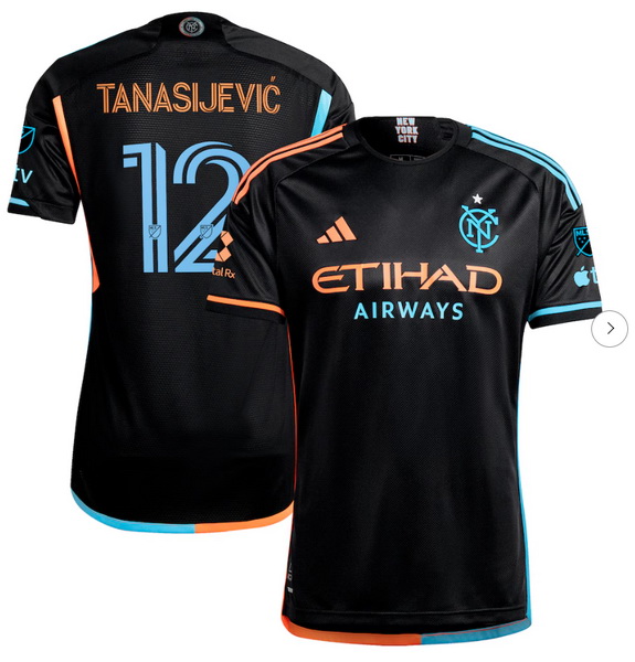 Men's New York City FC Strahinja Tanasijevic adidas Black 2024 24 7 Kit Authentic Player Jersey