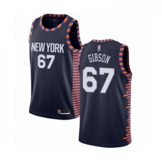 Mens New York Knicks 67 Taj Gibson Authentic Navy Blue Basketball Jersey 2018 19 City Edition