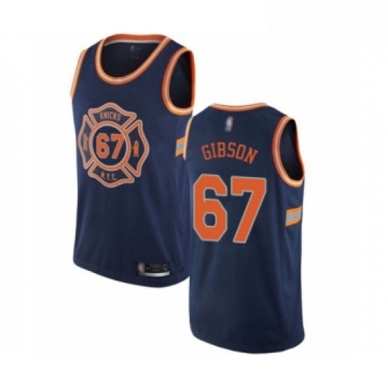 Mens New York Knicks 67 Taj Gibson Authentic Navy Blue Basketball Jersey City Edition